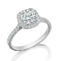 In the early 20th century, most square cut engagement rings were mounted with cushion cut diamonds. Although there are more diamond shapes available today, cushion cut diamonds are still very popular. These square cut diamonds have large facets and rounder corners which drastically increase their brilliance. The classic cushion cut diamond has a length-to-width ration of 1.00, or slightly rectangular ranging between 1.10 and 1.20.